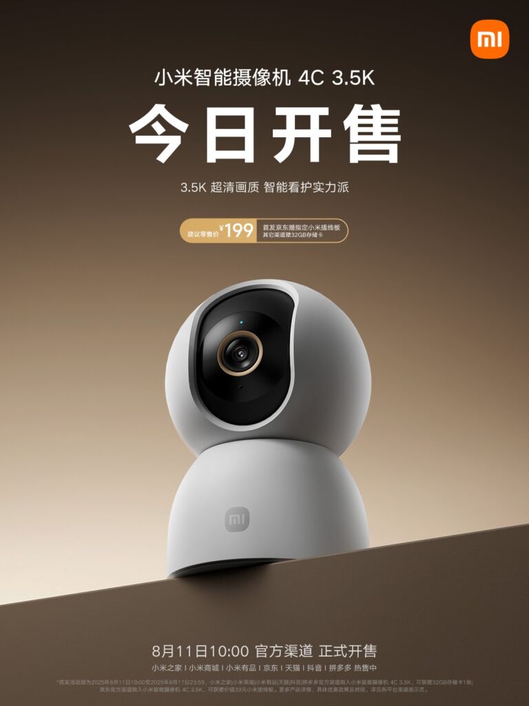 Die Xiaomi Smart Camera 4C 3.5K kann in China zum Preis von 199 Yuan, also etwa 28 Euro, vorbestellt werden. Zum internationalen Vertrieb gibt es derzeit keine offiziellen Informationen.